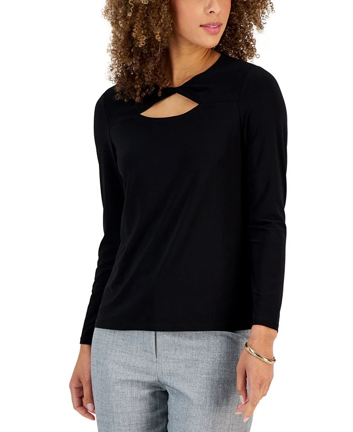 Kasper adds a contemporary touch to this long sleeve top with a fierce twisted neck detail and stretchy fabric.