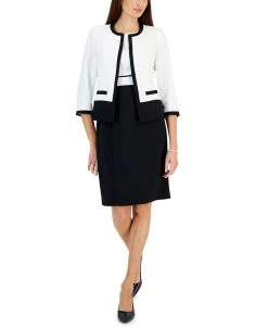 Bring timeless elegance to your workweek with this colorblocked set from Kasper, pairing an open-front blazer and matching sheath dress.