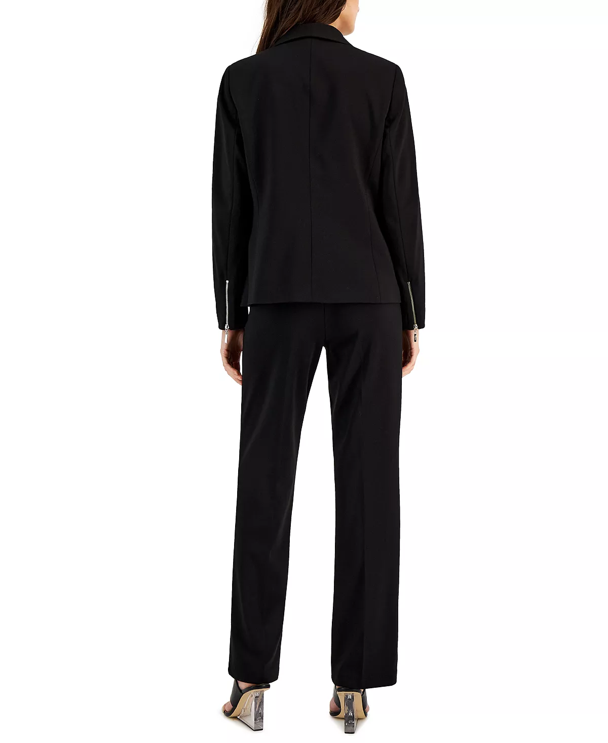 Look your professional best in a cinch with this women’s one-button blazer, coordinated tie-neck top and pants from Kasper. A must-have trio for any chic closet.