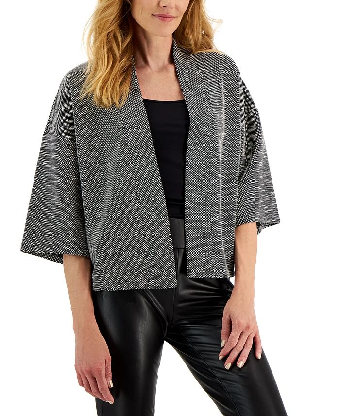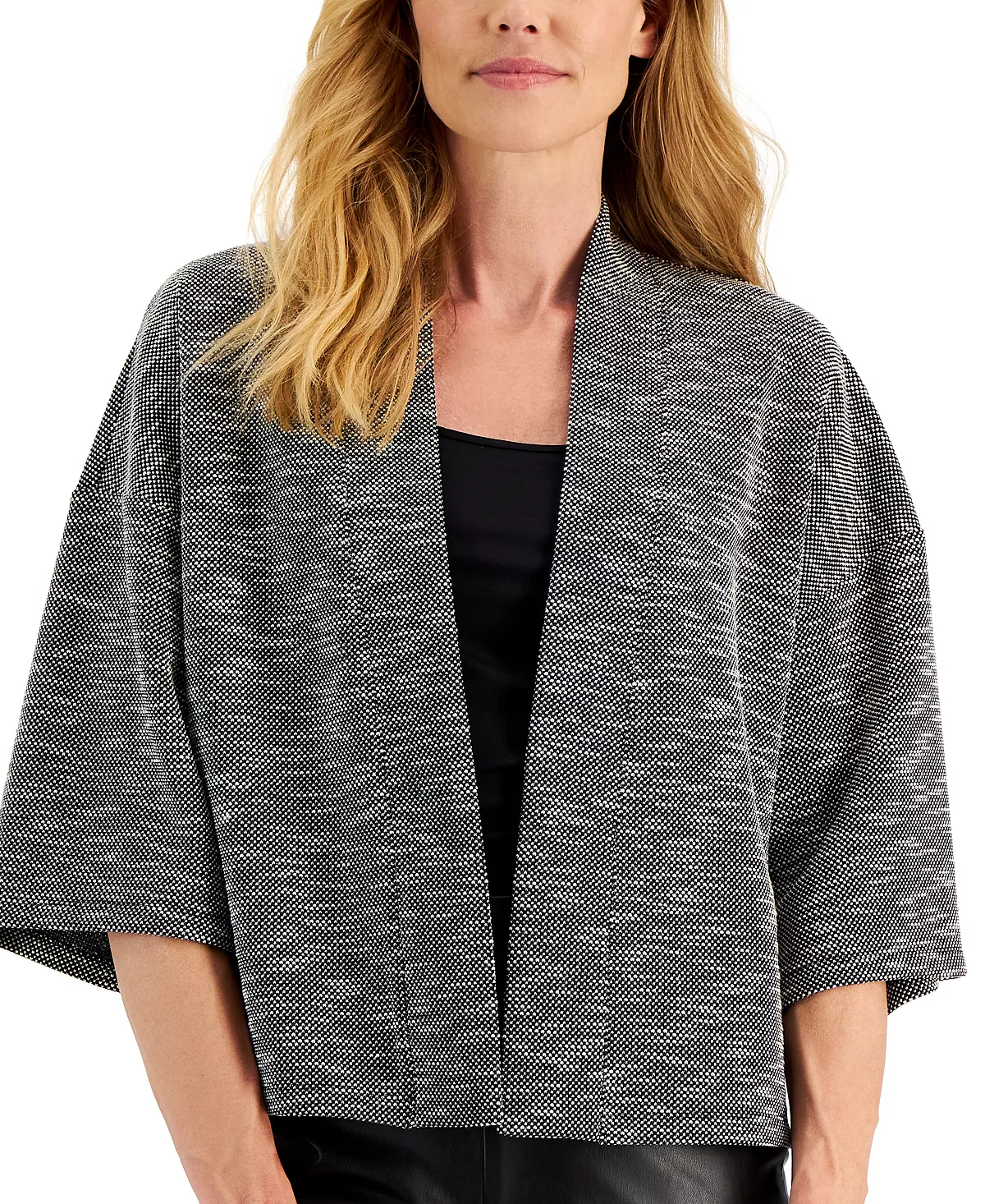 The perfect topper to any look, this 3/4-sleeve cardigan from Kasper features a shawl collar and a versatile open front.