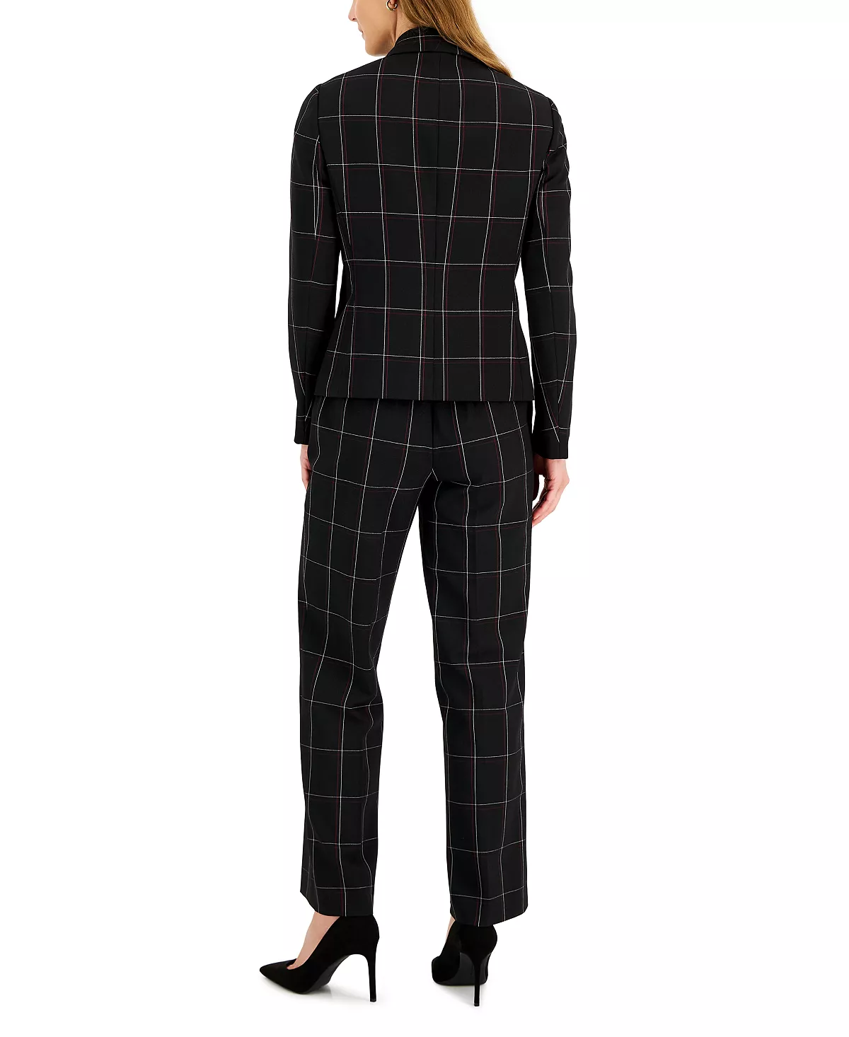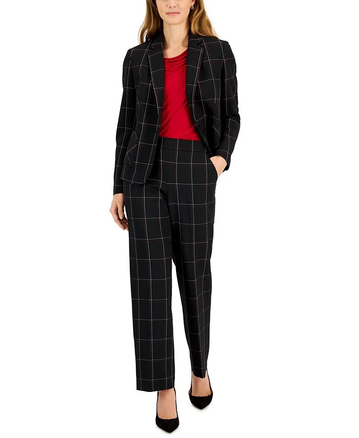 Kasper Women’s Plaid One-Button Notched-Collar Jacket, Cowlneck Cap-Sleeve Blouse & Pull-On Straight-Leg Pants