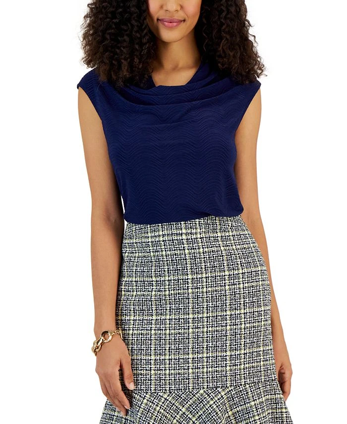 Add a sleek and versatile look to your weekday wardrobe with this top from Kasper. Designed in a textured fabric for visual interest and topped with a flattering cowlneck, endless ensembles await.