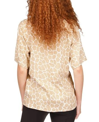 A trendy take on boho chic, this MICHAEL Michael Kors top accents an animal print with a lace-up neckline and tie hem.
