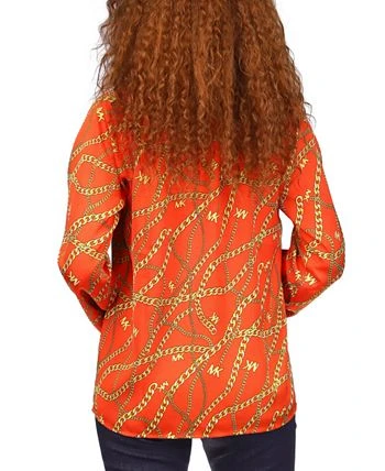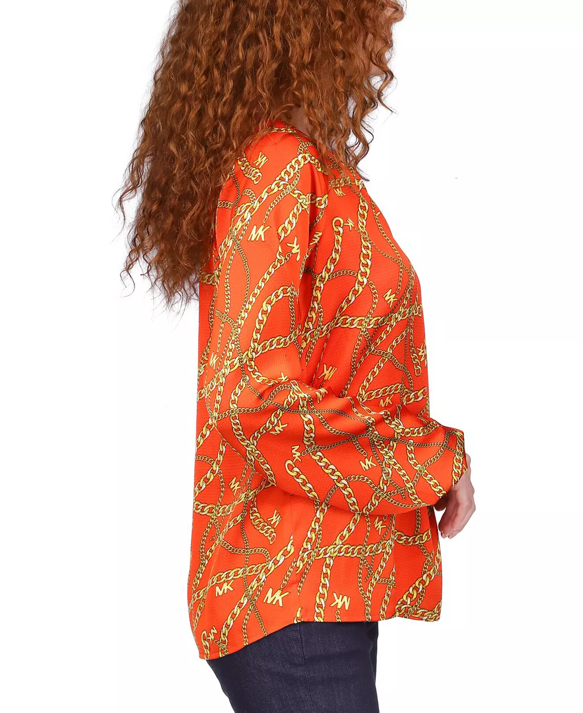 A peasant with polish. This MICHAEL Michael Kors top gives boho chic a reboot with a signature print on hammered satin and a chain at the neckline.