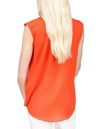 Soft in crepe with an inverted pleat that creates elegant flow, this MICHAEL Michael Kors top is updated with textured pinstripes.