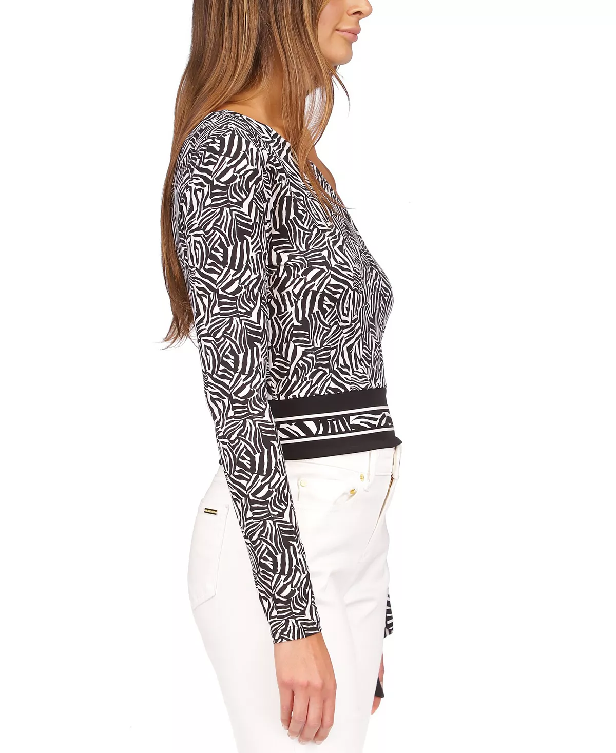 You’re stunning after hours in this fierce look from MICHAEL Michael Kors, a jersey top with a single sleeve and tie at the hem.
