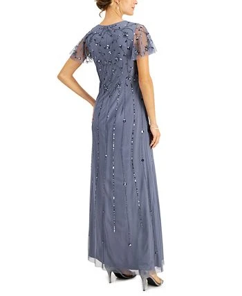 Truly elegant, this gown shimmers with delicate embellished accents, while sheer flutter sleeves add a touch of dreamy glamour from Papell Studio by Adrianna Papell.