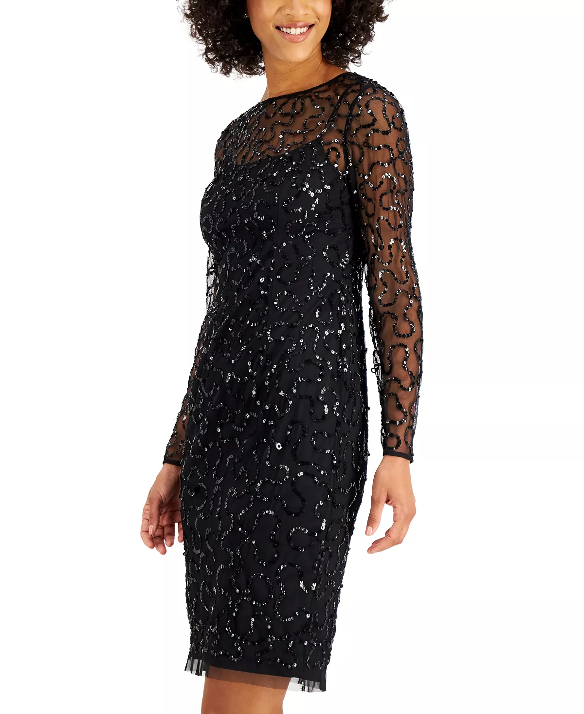 You will look and feel your best at your next formal event with this Adrianna Papell dress. Sparking sequins travel across this flattering sheath silhouette to give you the perfect balance of sophisticated shine.