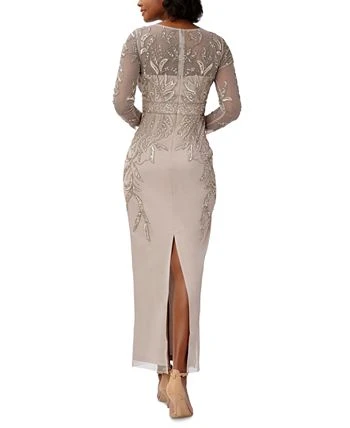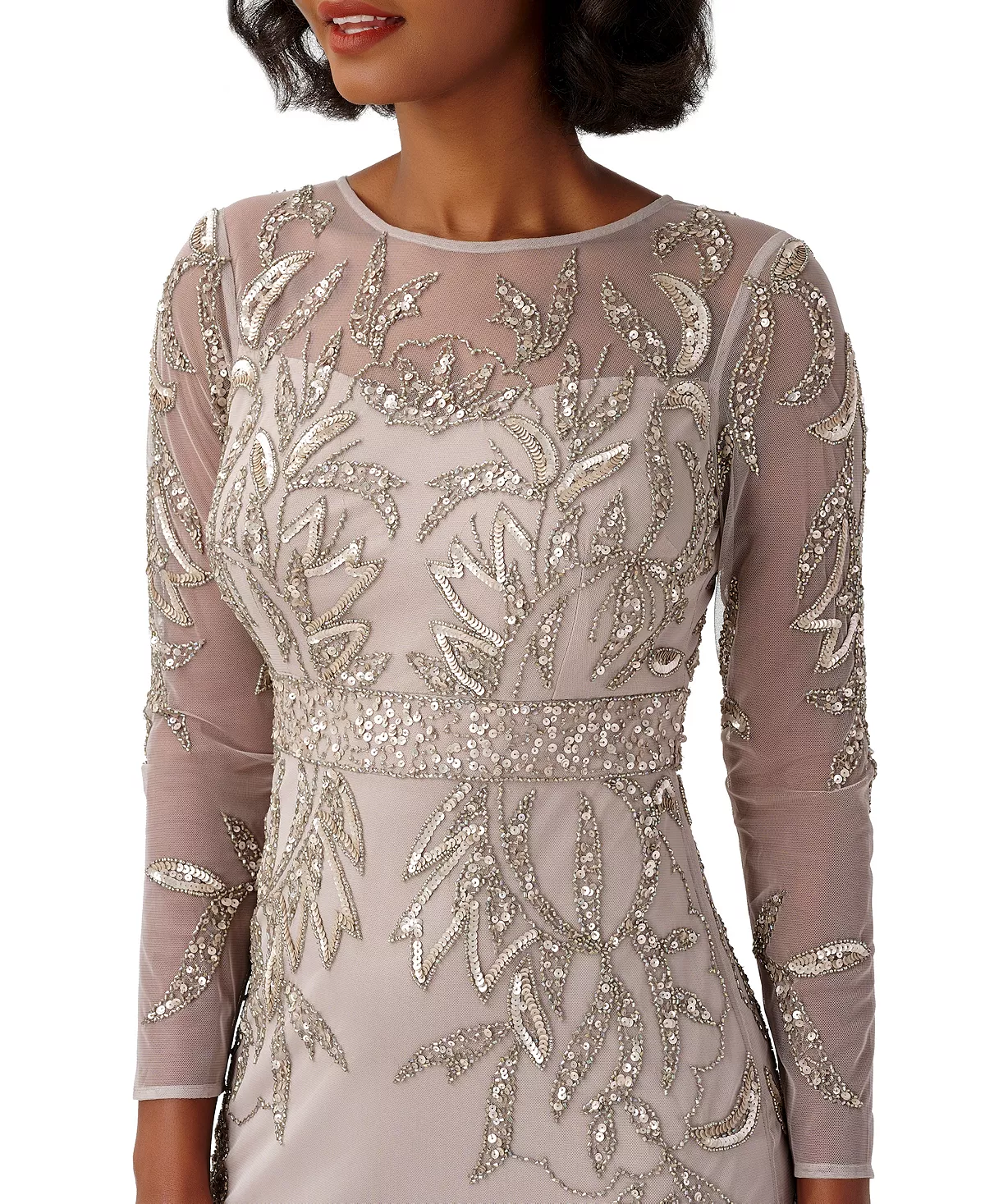 Papell Studio Women’s Beaded Long-Sleeve Sheath Gown