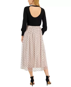 Anne Klein Women’s Open-Back Sweater & Dot-Print Pull-On Skirt