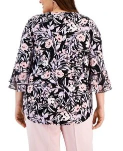 Kasper Plus Size Notched-Lapel Single-Button Blazer, Stretch Crepe Mid-Rise Ankle Pants, & 3/4 Sleeve Floral Print Top