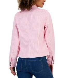 Charter Club Women’s Striped Denim Trucker Jacket, Created For Macy’s