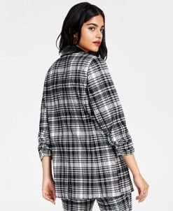 Bar III Women’s Plaid-Print Faux-Leather-Trim Blazer, Created For Macy’s