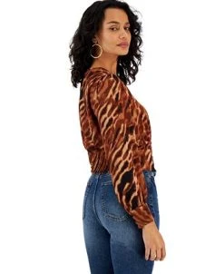 Bar III Women’s Animal-Print Keyhole Blouse, Created For Macy’s