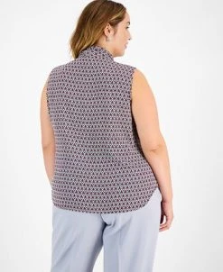 Bar III Plus Size Geo Print Sleeveless Bow-Tie Blouse