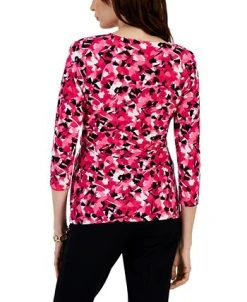 Kasper Printed 3/4-Sleeve Wrap Buckle Blouse