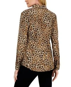 Charter Club Women’s Embellished Leopard Buttoned Top, Created For Macy’s