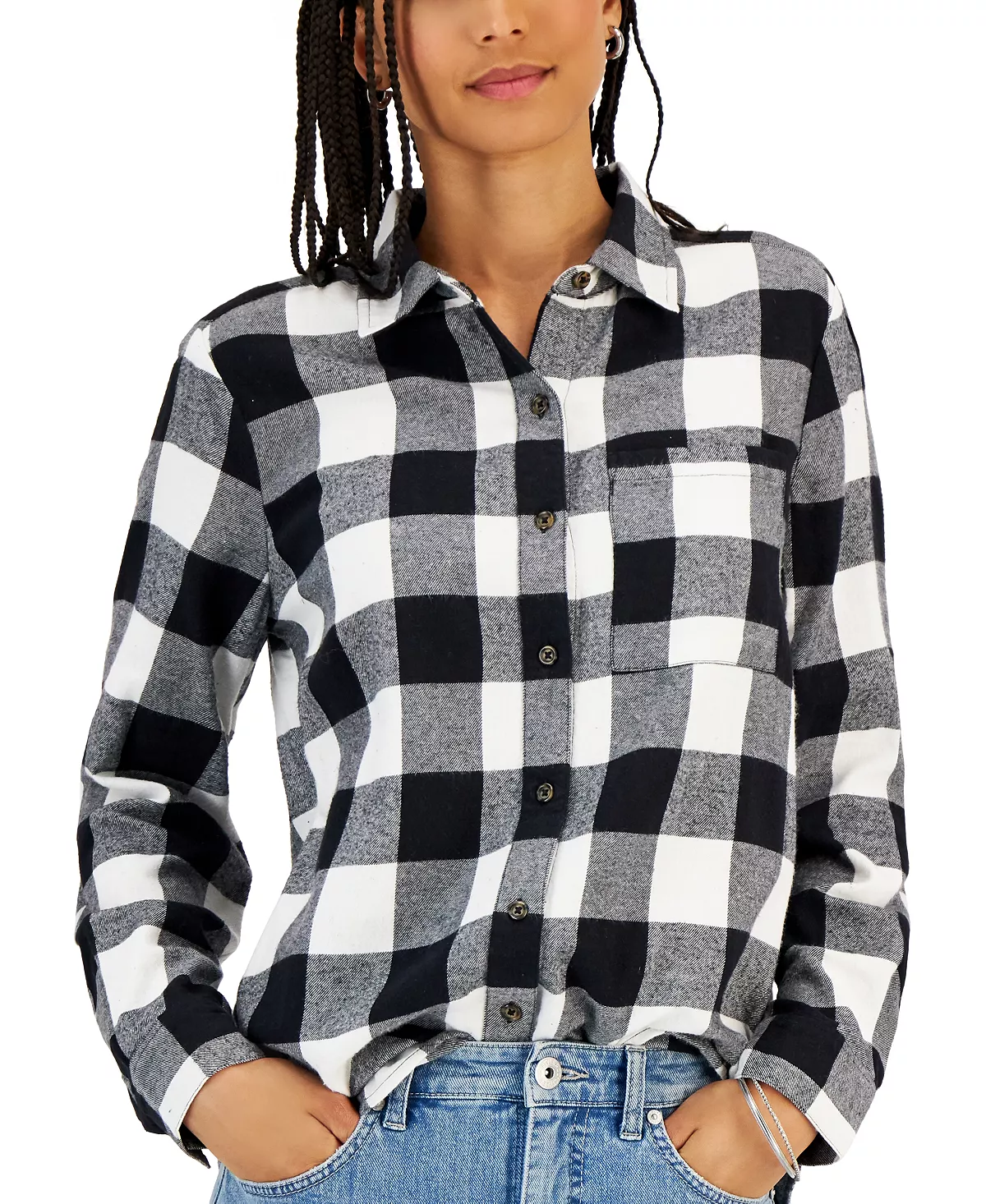 A classic in bold buffalo plaid, this cotton flannel shirt from Style & Co is a fun look alone or layered with a vibrant T-shirt.