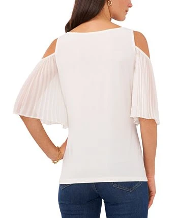 Polished pleats repeat all around cold-shoulder cutouts in this Vince Camuto V-neck top that you’ll wear time and time again.