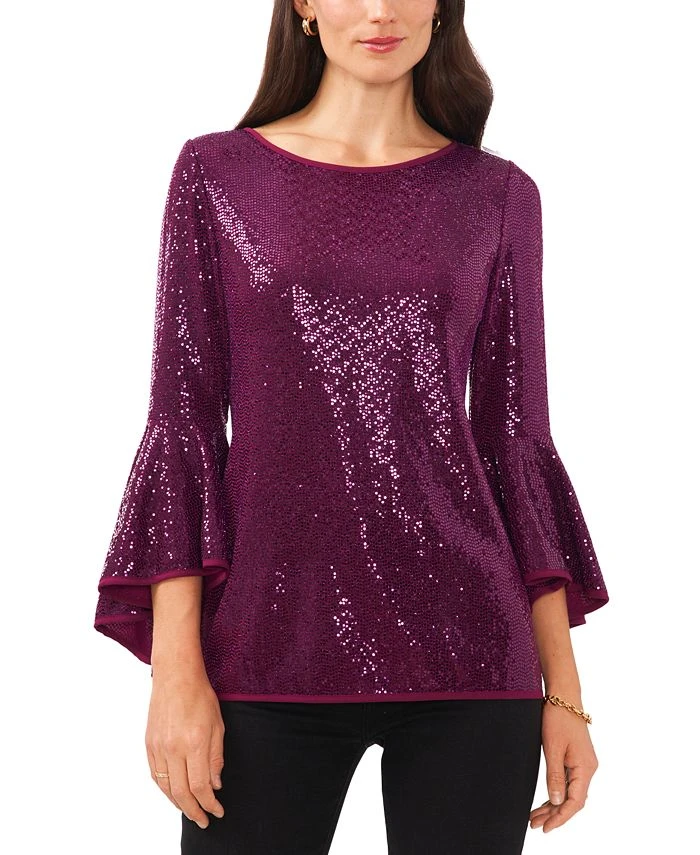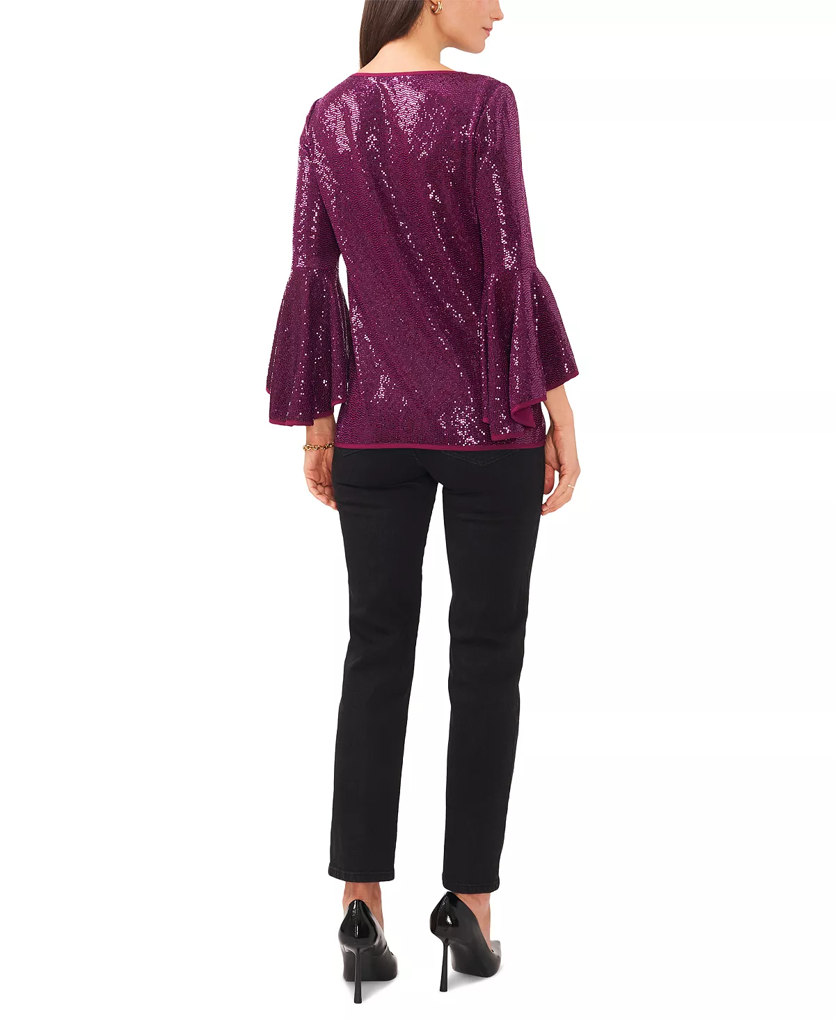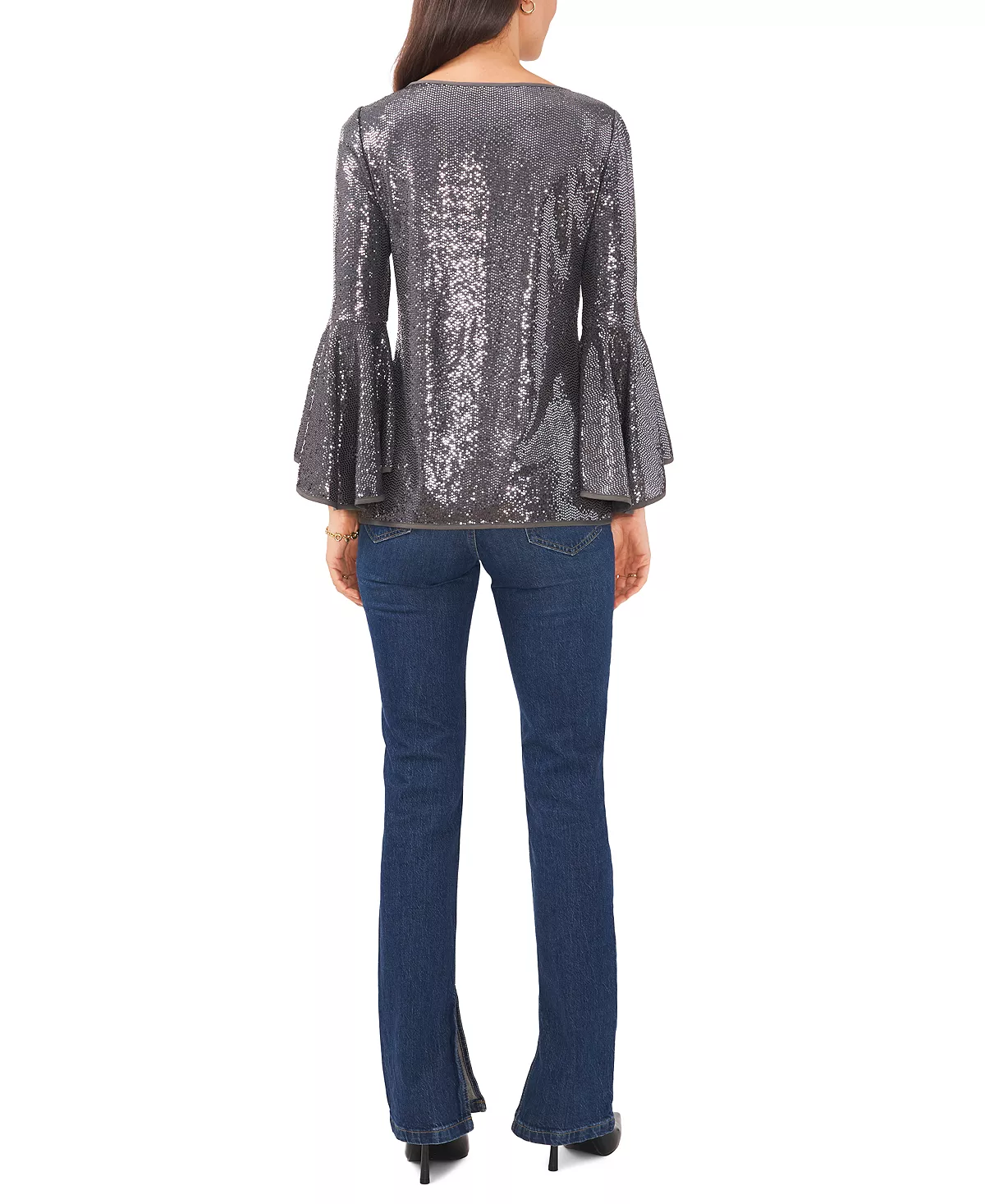 Bring the shine to any occasion with Vince Camuto’s stunning flutter sleeve top, featuring an allover glamorous metallic shine.