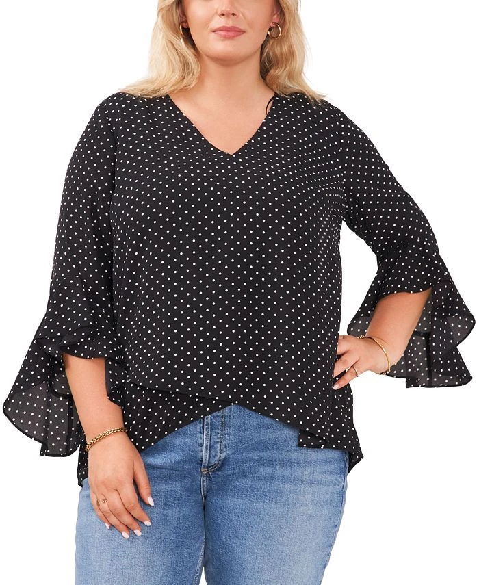 Get spot-on style with Vince Camuto’s flutter-sleeve plus size blouse.