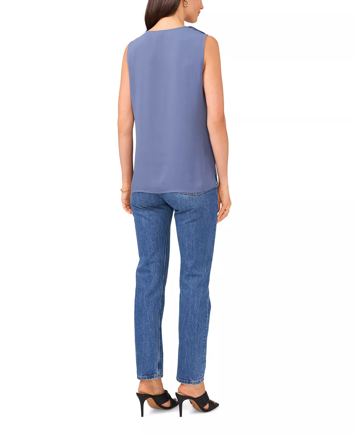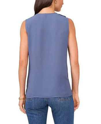 Dainty ruffled details at front are the highlight of this solid V-neck top from Vince Camuto.
