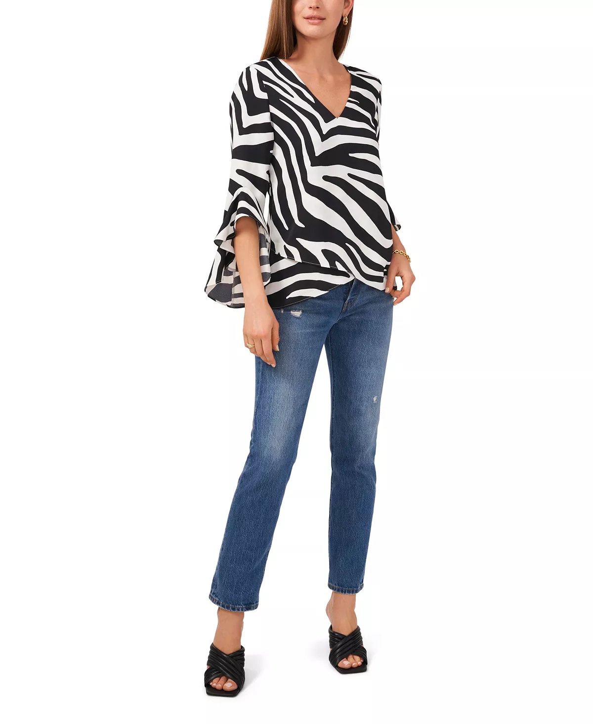 Our classic silhouette top in an animal print from Vince Camuto that can be paired with any bottoms.