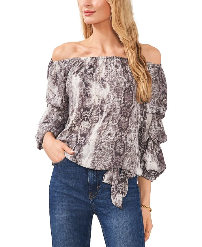 Framed by stylish bubble sleeves and topped with an off-the-shoulder neckline, this women’s top from Vince Camuto is an always-chic pick.