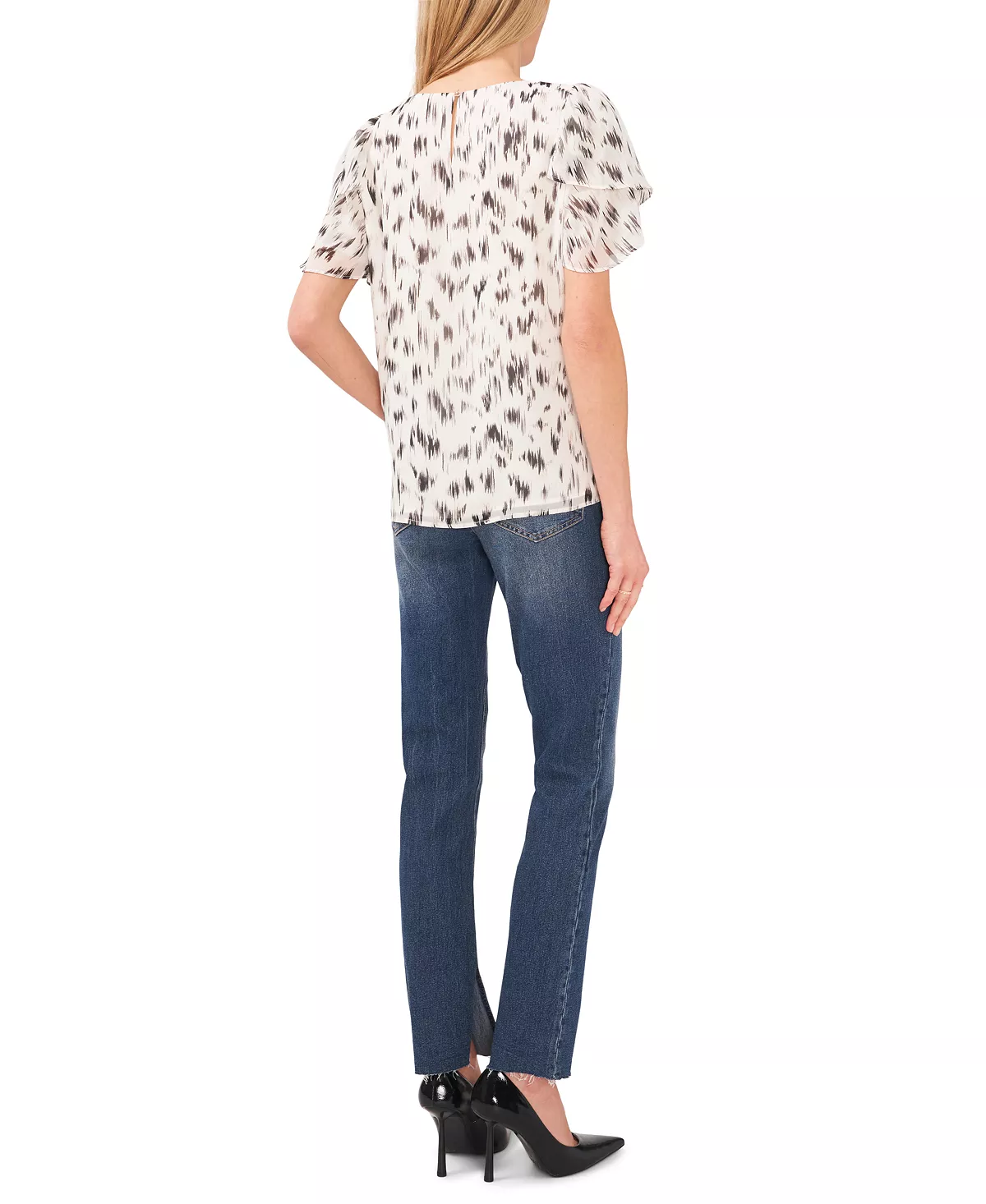 Tiered petal sleeves take this Vince Camuto blouse to a stylish new dimensions. A sleek print keeps the look current.