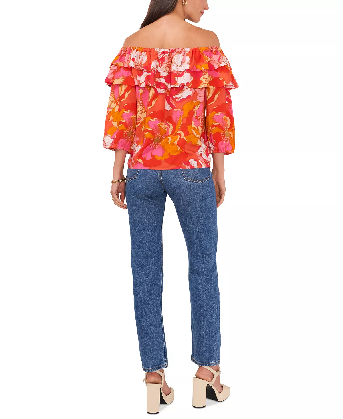 Double ruffles bring fresh fun to this Vince Camuto top, an off-the-shoulder silhouette updated in current color.