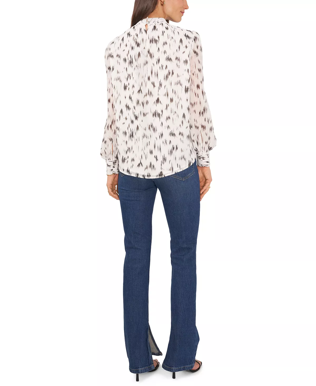 Elegant with an edge. This Vince Camuto blouse features a fresh print and sheer, flowy sleeves that instantly update your look.