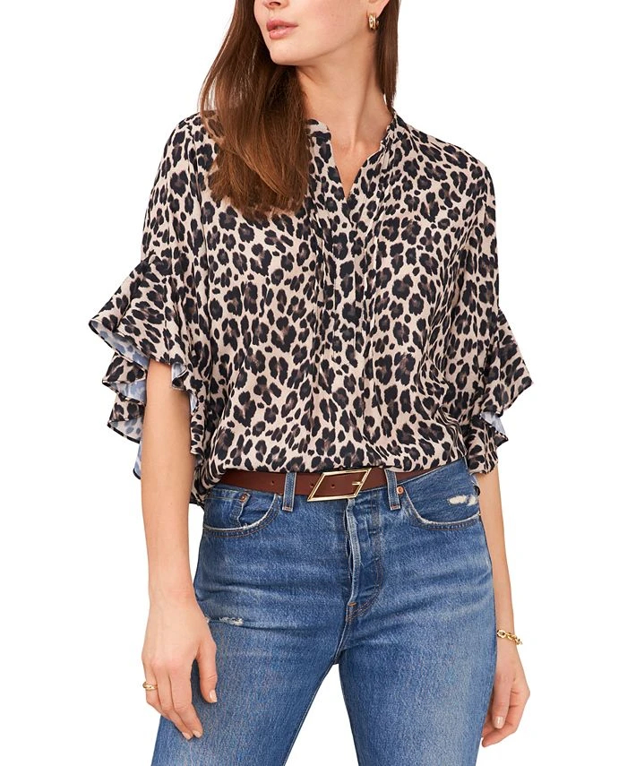 For a fierce look, Vince Camuto has your number in this leopard print blouse with bold ruffled sleeves.